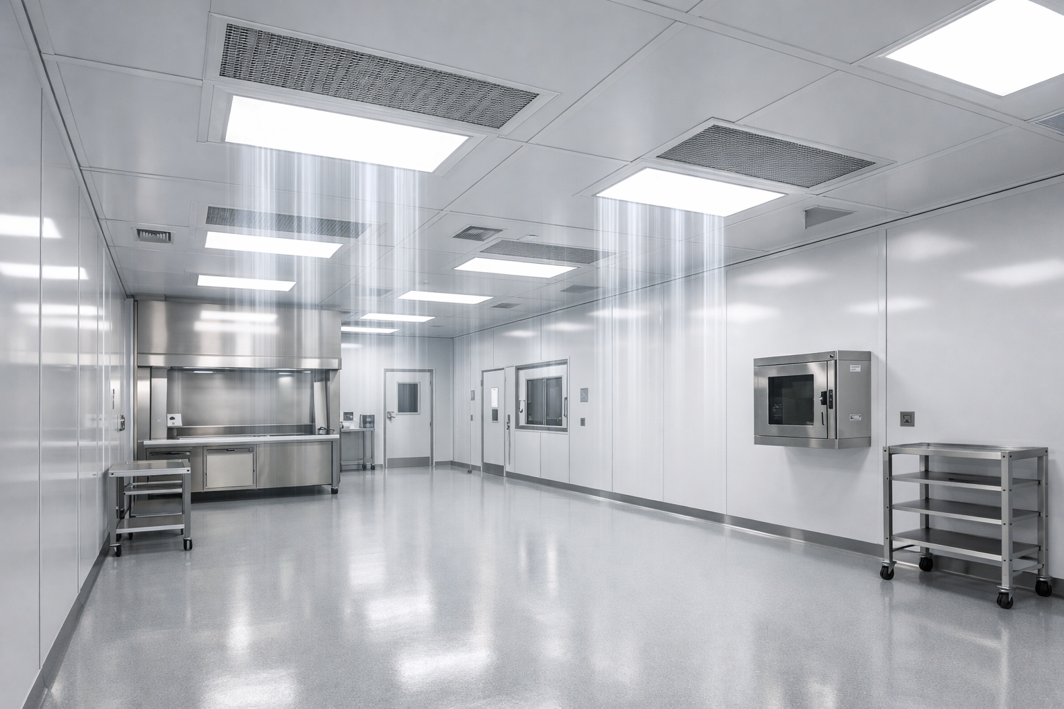 Materialele de suprafață, procedurile de îmbrăcăminte și programele de curățare fac parte din controlul contaminării. Suprafețele netede, neporoase reduc creșterea microbiană, în timp ce protocoalele stricte ale personalului, inclusiv costumele pentru camerele curate, mănușile și măștile, limitează introducerea de particule. Curățarea regulată folosind dezinfectanți aprobați menține în continuare conformitatea cu standardele GMP.